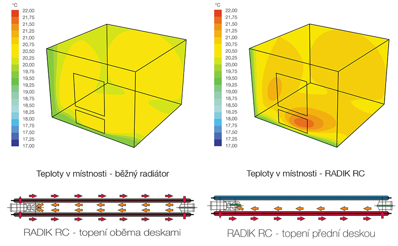 Zvýšení střední teploty přední desky má i příznivý vedlejší efekt. Mnozí často negativně reagují na teplotu tělesa, pokud je nižší než teplota lidského těla, přestože je v místnosti požadovaná tepelná pohoda. Při vyšší střední teplotě čelní desky se tento negativní pocit, který je velmi častý v bytových domech, zmenšuje. S tělesy RADIK RC jej lze z části potlačit.