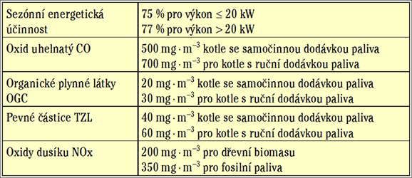 Co se týče obecných požadavků na minimální účinnost a emisní limity, oproti stávající praxi se již nejedná o parametry ověřované při certifikaci kotle, ale o tzv. „sezónní hodnoty“.