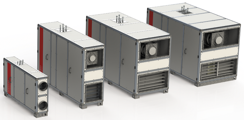 - Elektrické ohřívače ve dvou výkonových variantách pro každou velikost jednotky umožňují využít jednotky také jako vytápěcí (tzn. i pro hrazení tepelných ztrát objektu).