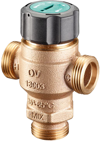 Směšovač je vyroben z bronzu, má oboustranný vnější závit s plochým těsněním dle DIN ISO 228,