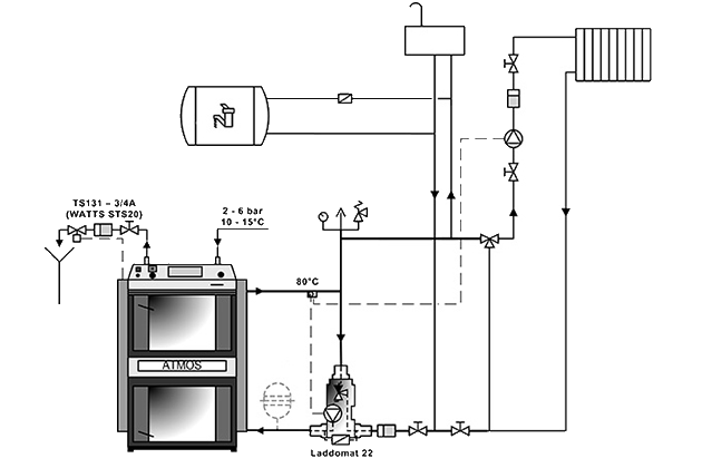 Zplynovací kotle na dřevo ATMOS musí být zapojeny s LADDOMATEM